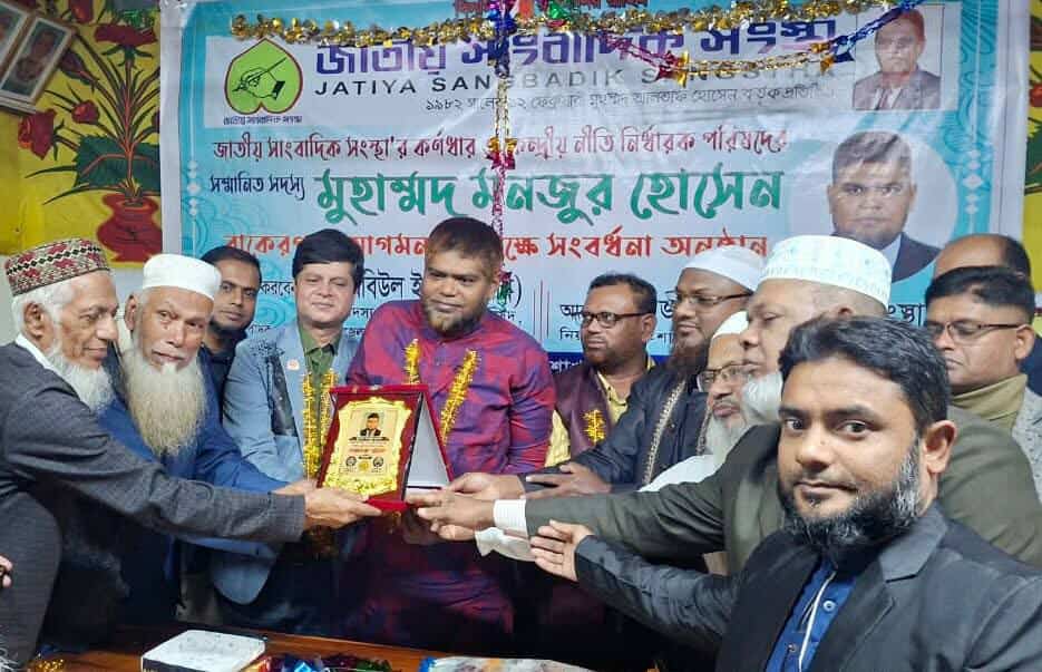 নিজ গ্রামে সংবর্ধিত সাংবাদিক নেতা মঞ্জুর হোসেন