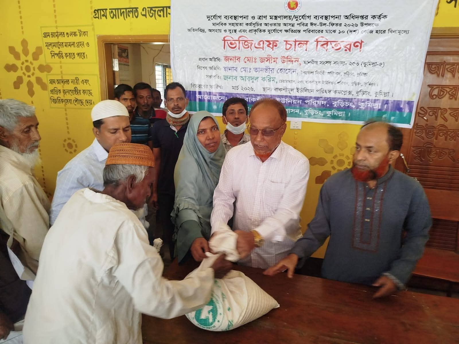 আসন্ন পবিত্র ঈদুল ফিতর উপলক্ষে কুমিল্লার বুড়িচং উপজেলার বাকশীমূল ইউনিয়ন পরিষদে ভিজিএফ (VGF) কর্মসূচির আওতায় চাল বিতরণ কার্যক্রম সফলভাবে সম্পন্ন