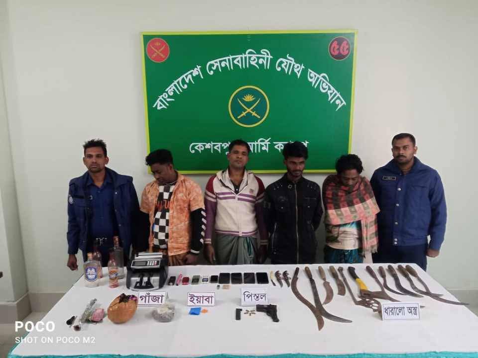 যশোরের কেশবপুর সেনাবাহিনীর অভিযানে বিপুল পরিমাণে অবৈধ অস্ত্র উদ্ধার