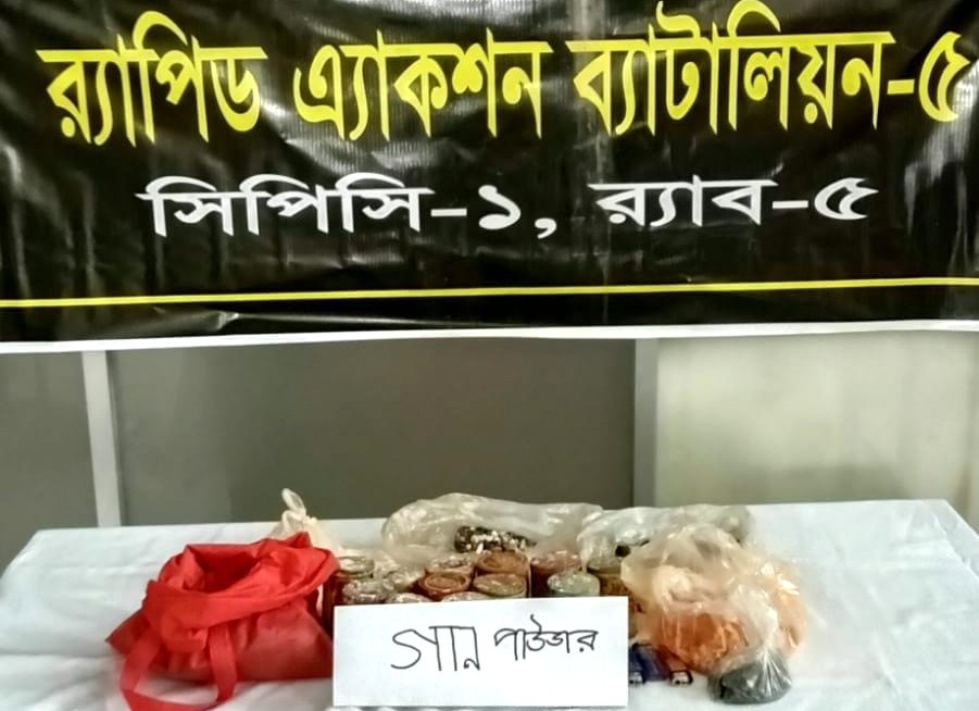 শিবগঞ্জে র্যাবের সফল অভিযানের ৩ কেজি ৩’শ গ্রাম গান পাউডার উদ্ধার