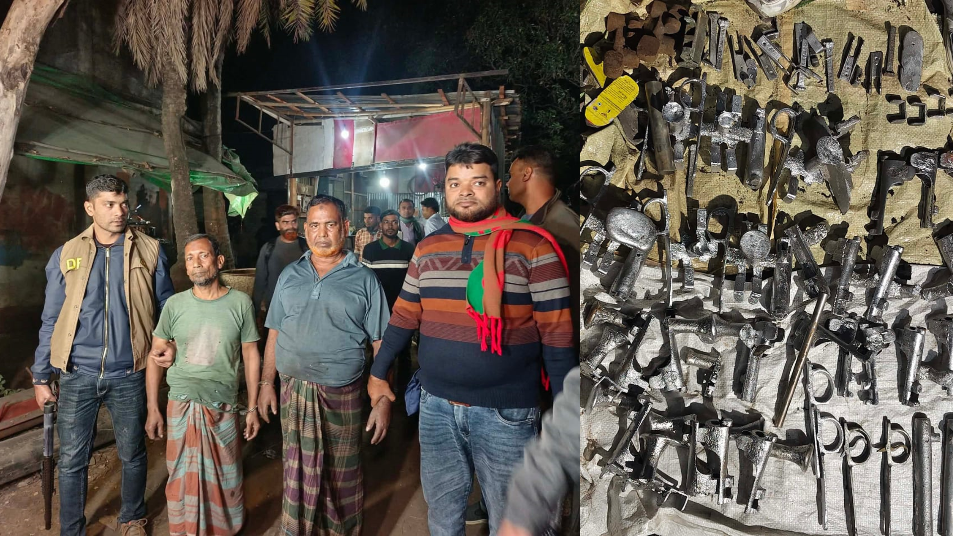 খুলনায় পুলিশের অভিযানে লেদ কারখানা থেকে উদ্ধার হওয়া অস্ত্র সামগ্রী ডামি