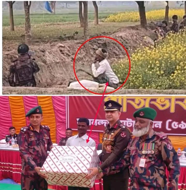 চাঁপাইনবাবগঞ্জ সীমান্তে কাস্তে হাতে দাঁড়িয়ে ভাইরাল হওয়া সেই কৃষক বাবুলকে আজ সংবর্ধনা দিয়েছে বর্ডার গার্ড বাংলাদেশ (বিজিবি)। সীমান্তে দায়িত্ববোধ ও