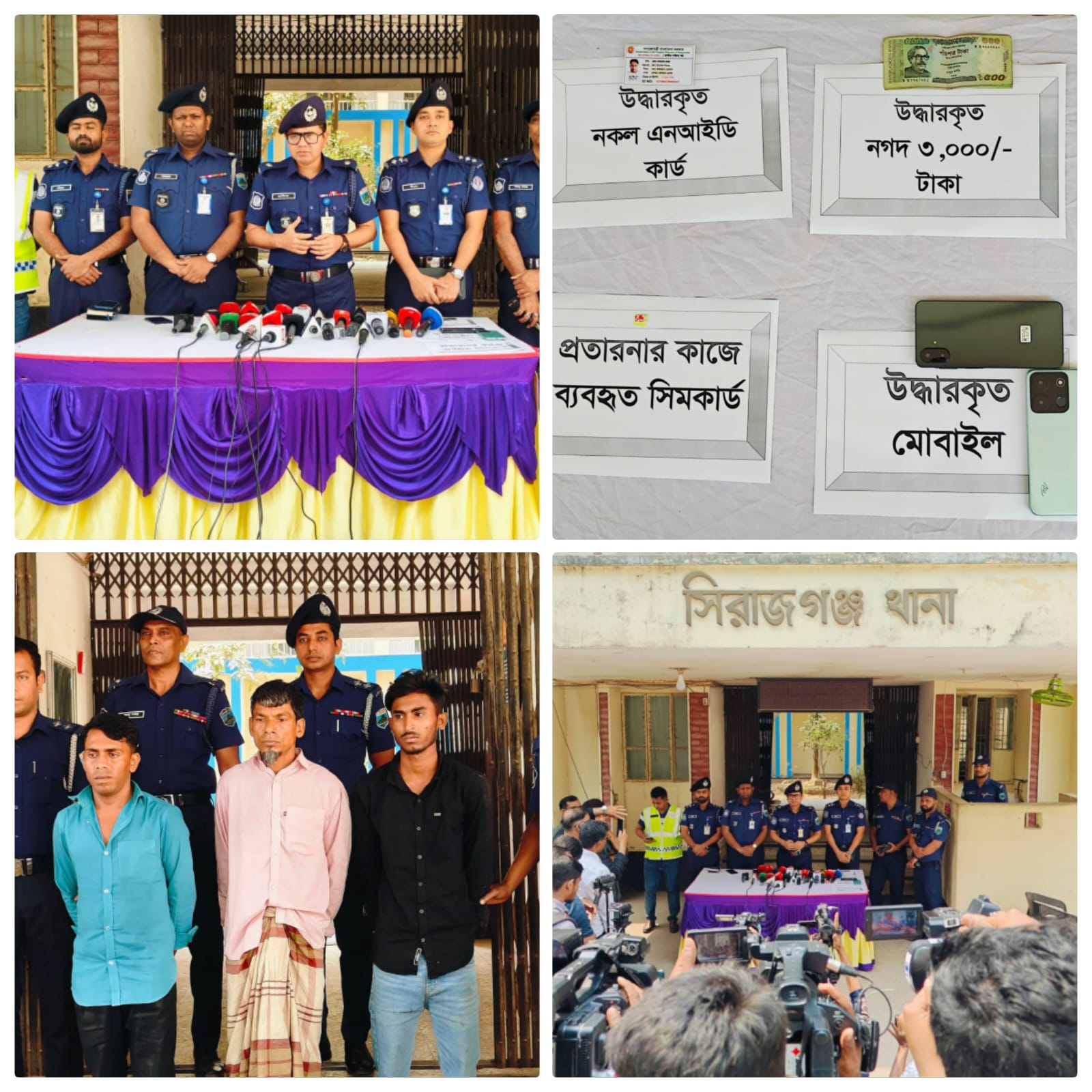 সিরাজগঞ্জে পুলিশ সুপার সহ ঊর্ধ্বতন সরকারি কর্মকর্তাদের নাম ও ছবি ব্যবহার করে প্রতারণায় গ্রেফতার ৩ জন