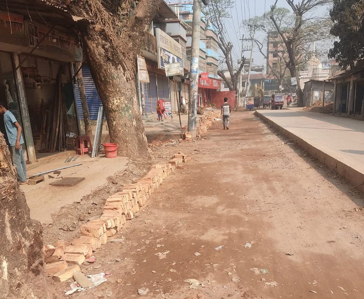 রাস্তার ধীরগতি: রাস্তার একপাশে ইটের গাঁথুনি বা সাইড ওয়ালের কাজ চললেও পুরো এলাকাটি ধুলোবালি এবং এবড়োখেবড়ো হয়ে আছে। জনভোগান্তি: যাতায়াতের