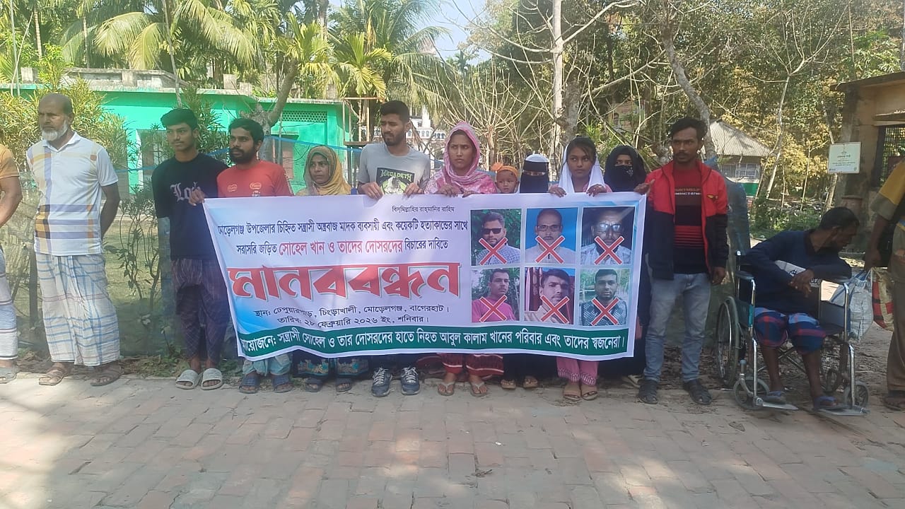 মোড়েলগঞ্জে সোহেল খান ও তার সহযোগীদের গ্রেফতারের দাবিতে মানববন্ধন