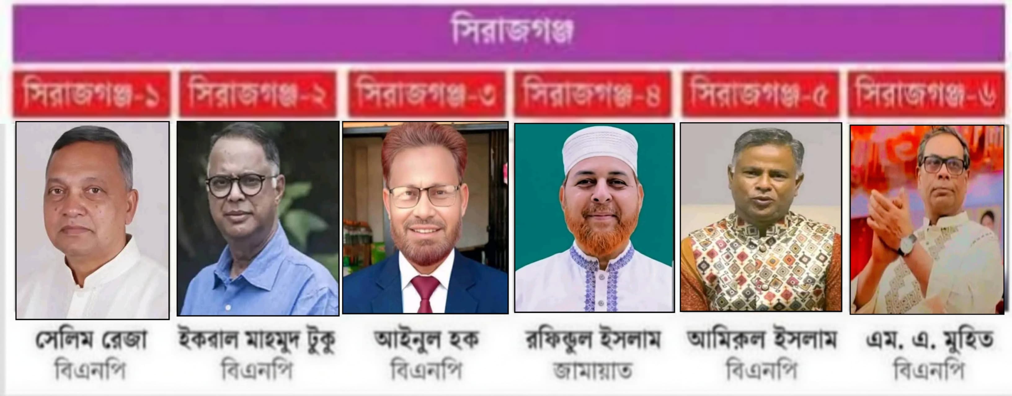অবশেষে সকল জল্পনা কল্পনার অবসান ঘটিয়ে সিরাজগঞ্জে ছয়টি আসনের মধ্যে পাচঁটিতে বিএনপির ও একটিতে জামায়াত জয়