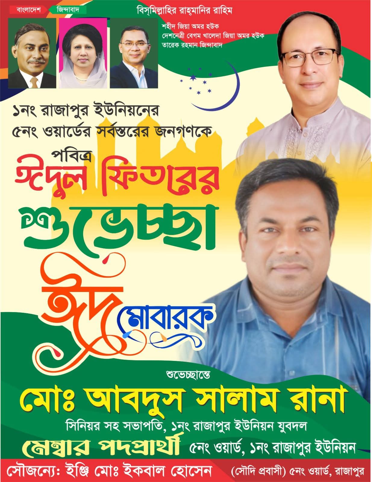 রাজাপুর ইউনিয়নে ঈদ-উল-ফিতরের আমেজ, সকলের প্রতি শুভেচ্ছা জানালেন আব্দুস সালাম