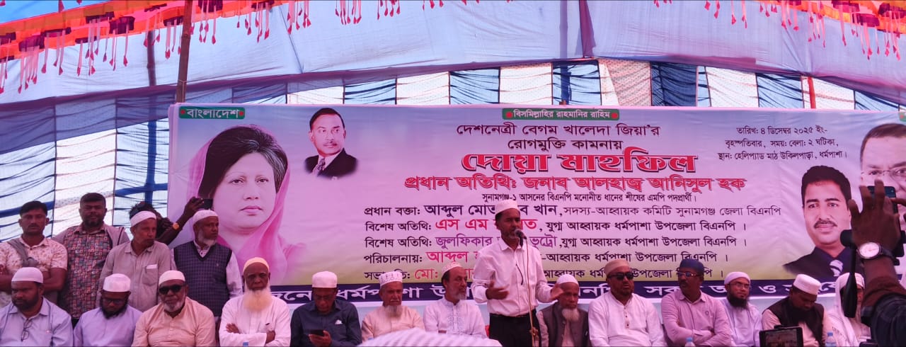 ধর্মপাশায় খালেদা জিয়ার রোগমুক্তি কামনায় দোয়া মাহফিল